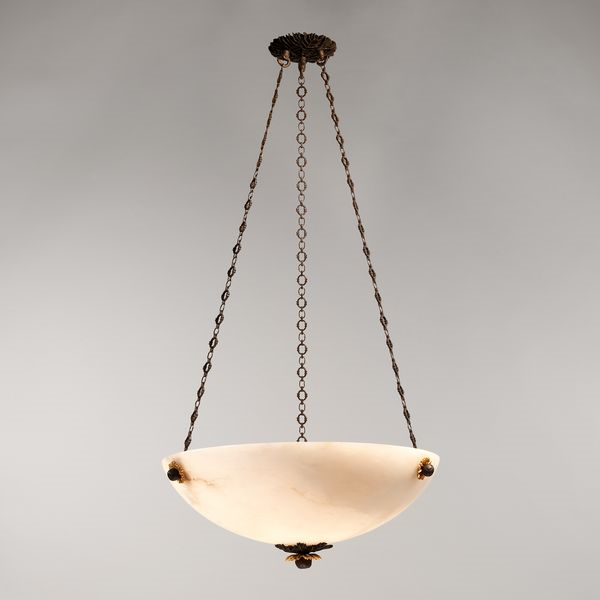 The hand-finished Italian alabaster bowl complements the beautifully cast finial and buttons, which are inspired by organic plant forms.Bronze and Gilt
