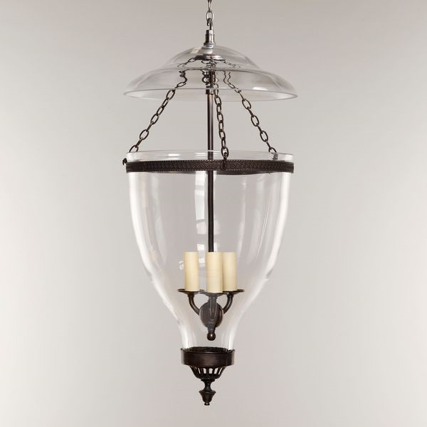 Based on an 18th century Adam period antique, the lantern is neo-classical in style. The inverted bell shape of the hand-blown glass unifies with the intricately decorated belt and open ventilator.