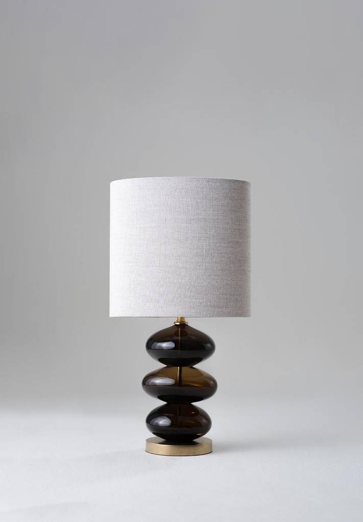 CONSTRUCTED FROM Blown glass with brass or nickel plated brass HEIGHT 270mm | 10 3/4" HEIGHT WITH SHADE 520mm | 20 1/2" MATERIAL Glass RECOMMENDED SHADE 10" Slim Straight Oval WIDTH 160mm | 6 1/2" WIDTH WITH SHADE 267mm | 10 3/4"
