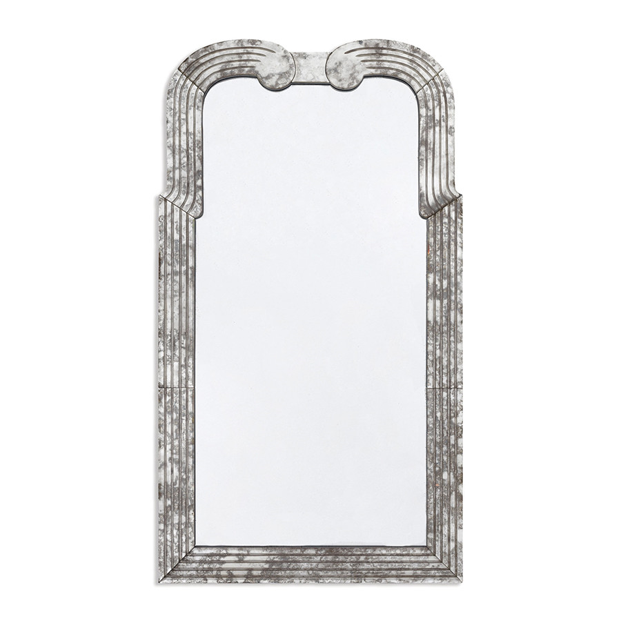 Description : Heavily antiqued Deco style mirror with reeded mirrored frame.