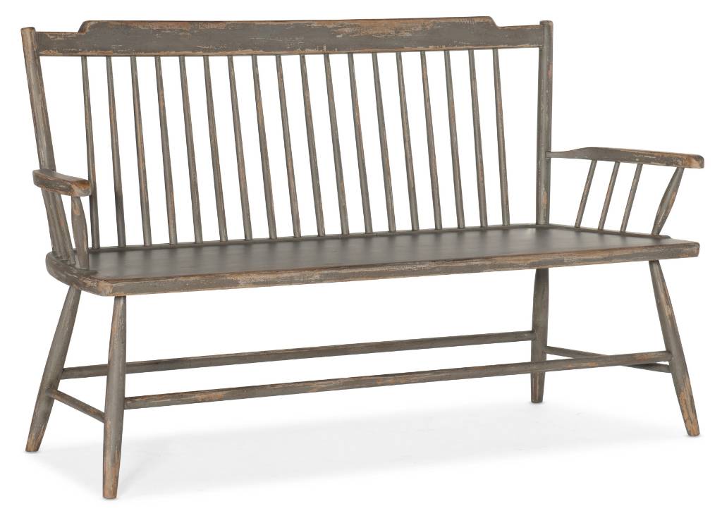 Product Description: Relax in a nostalgic family farmhouse ambience with this charming spindle-back dining bench. Crafted of hardwoods, the Marzano bench has a character-filled Pottery finish in a dark gray color with distressing, scraping and hand planing for a vintage feel.