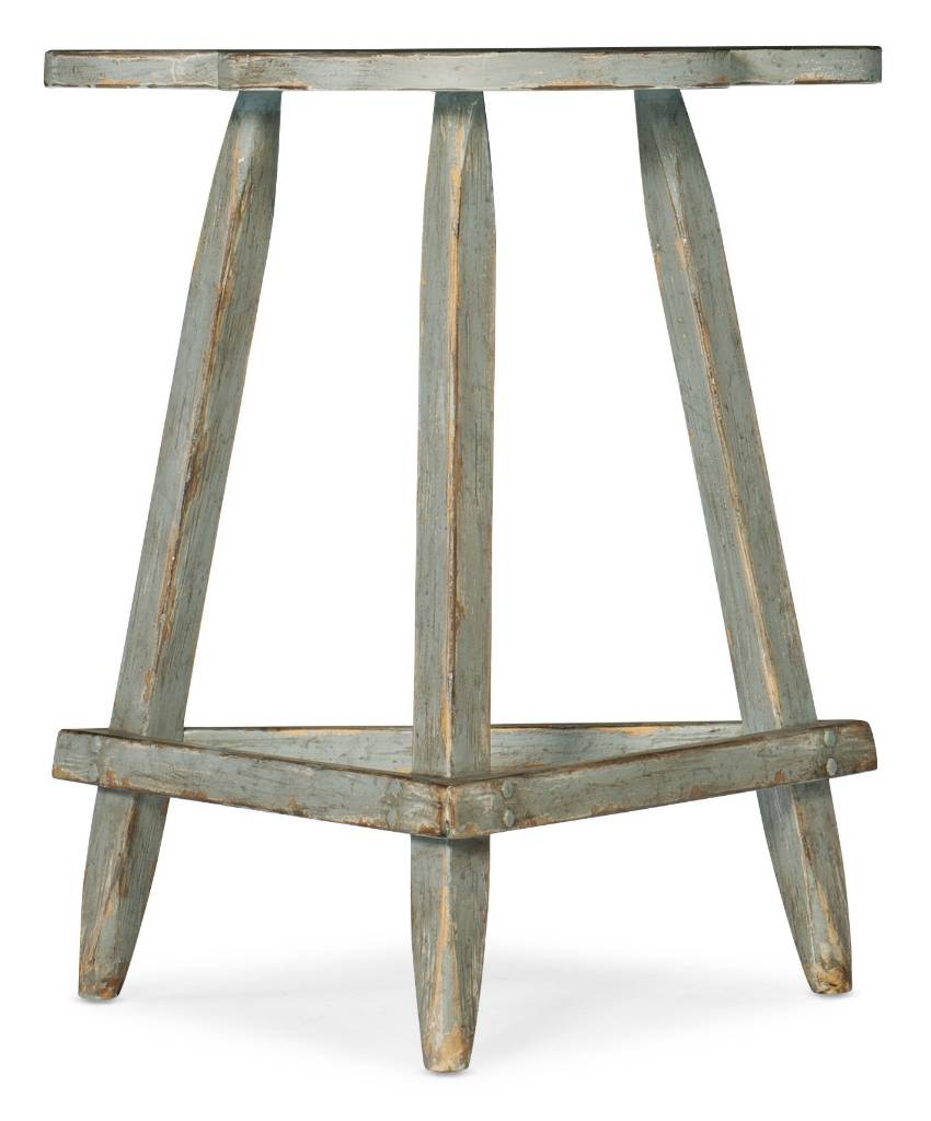 Product Description: Simple, serene and stylish, the nostalgic clover-shaped Trifoglio Accent Table exudes charm and primitive posh. Crafted of Oak Veneers with 3 legs joined by a stretcher, the table is finished in the subtle Gustavian Blue with hand-planing for a casual, aged appearance.