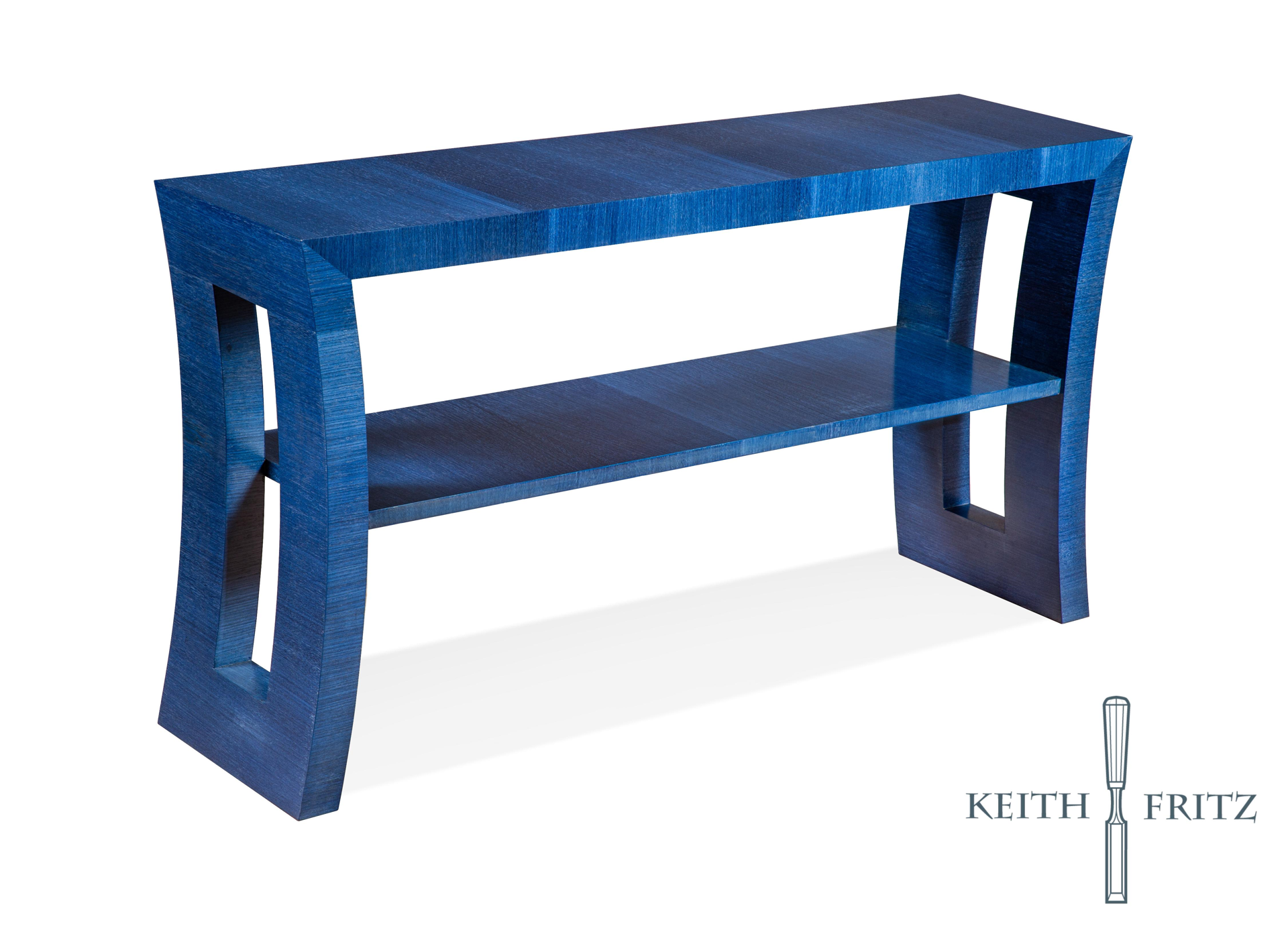 Dallas Designer Allen Kirsch conceptualized the Allen console and commissioned Keith Fritz to craft this bold piece. The console features clean, strong curves perforated with a graphic side cutout. The hand-planed espresso finish gives the design a soft, rich texture. Add drawers for a custom desk.