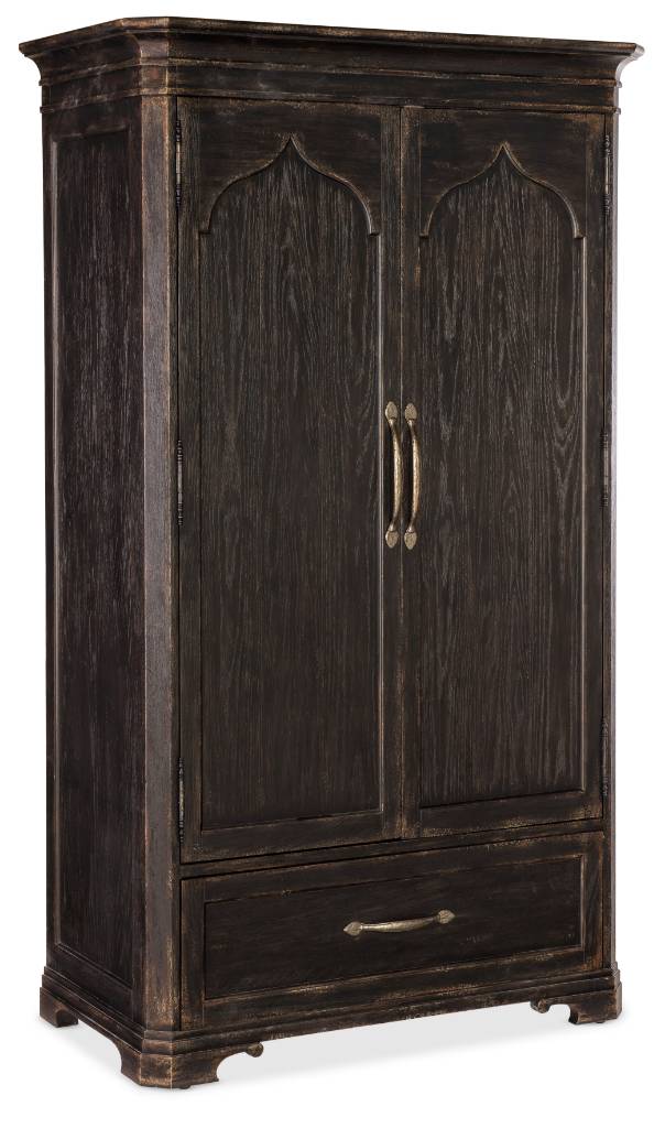 Collection Features: Americana is a celebration of our rural heritage that reflects the character, strength, and natural beauty of a simpler time. The Americana collection reimagines historical pieces and designs with a fresh take on finish, function, hardware, and forms. Offering bedroom, dining room, entertainment, accent and occasional items, each piece in the collection strikes a timeless balance between history and nature. Crafted with oak veneers, Americana features three core finishes – Daisy, Honey and Molasses – as well as assorted accent finishes with decorative artwork. Key design elements include parquet tabletops, two-tone finishes, architectural arched details, seeded glass and antique mirrors. Hardware includes classic bale-style and hand-hammered metal hardware, both in a muted brass tone finish.