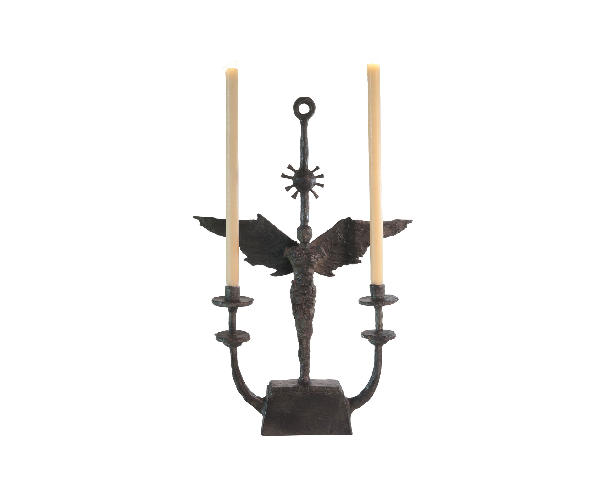 A two-arm candelabrum in hand-cast solid bronze.