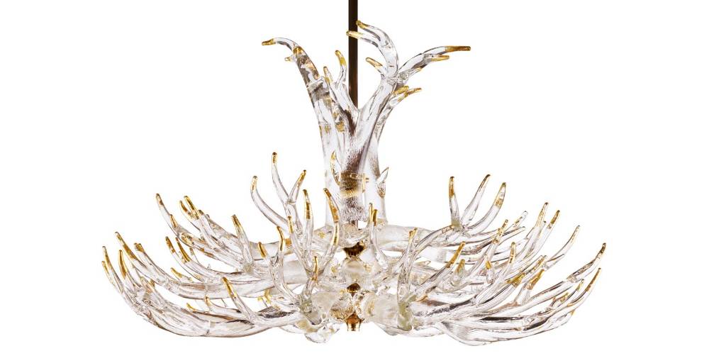 Hand sculpted molten glass formed into 23 antlers with 24k gold leaf tips. 4 maginficent tiers. 45"dia. Polished brass solid hardware construction., TEAR SHEET, Gallery Images, Standard Sizes,Custom configurations available,© 2024 Studio Bel Vetro ,TERMS, | ,FREIGHT