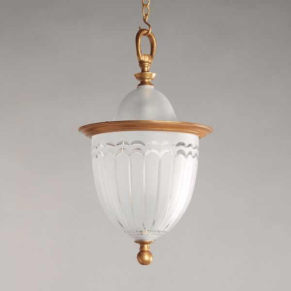 Based on an Edwardian antique, this light is small and elegant. The beautifully etched bell-shaped glass unifies with the cast brass finial.Brass
