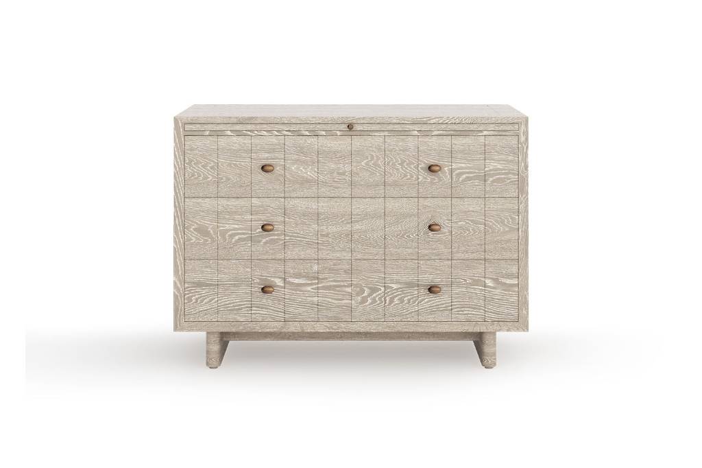 All Erinn V. case goods are made to order in California using only the finest woods and metals, resulting in a richness of materials. Erinn V.’s modern-classic designs are highlighted by a range of fine details: hand-hammered hardware created specifically for each piece, hand-silvered mirrors in the most unique finishes, and sophisticated finishes such as gold leaf, which is gently applied and then glazed. All Erinn V. tables and cabinets are constructed using the same methods employed by fine European craftsmen for durability and unparalleled style, with modern technology like slow-close hardware on drawers and hinges. Erinn V. furniture is customizable for a one-of-a-kind feel, poised to be an heirloom of the future.