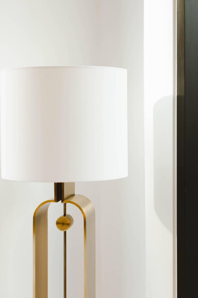 Our Ava Floor Lamp’s minimalist silhouette delivers significant stylistic impact with a relatively small footprint, albeit with a touch of sophisticated whimsy. What looks like a decorative knob is, in fact, the dimmer, and was inspired by the controls of hi-fi stereos from the ’60s and ’70s.