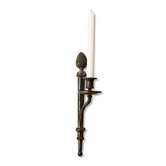 Description : Neo-classical style gilt and steel candleholder. Finish : Antiqued and Distressed Gilt and Steel
