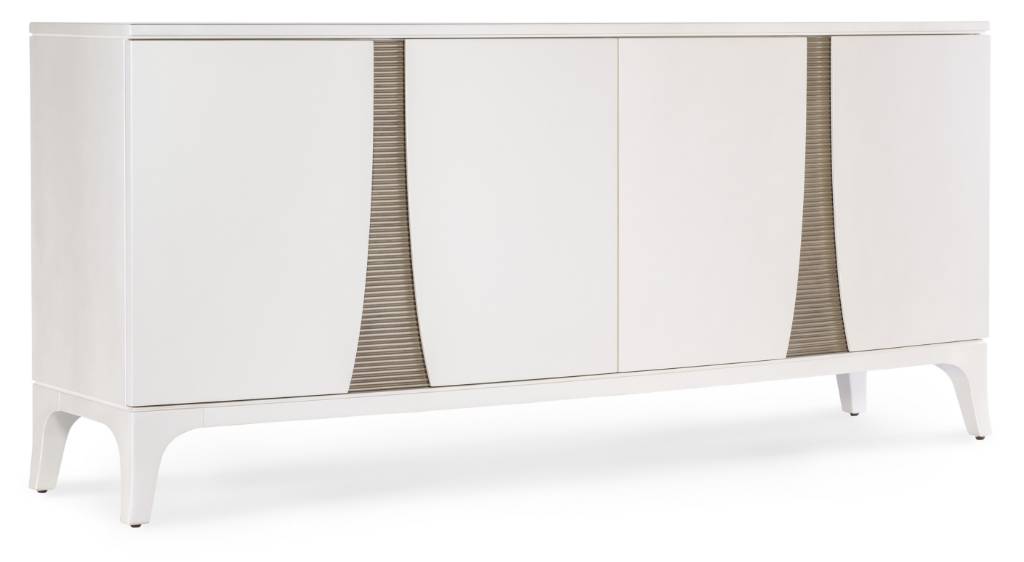 Collection Features: Hooker Furniture's Bella Donna collection is characterized by its elegant forms, rich with shape and movement. Channeling Sophia Loren’s timeless sophistication and style as its muse, Bella Donna appeals to the classic consumer, but with a little “edge” to their design style. Caviar, the primary finish for Bella Donna, has a deep translucent tone on rich cathedral cherry veneers. Akoya, representing the purest white pearls found in the world, is a perfect accent finish, adding sophistication and a bit of glam. Unique design details include reeding on selected pieces that create a “curtain effect,” reverse breakfront serpentine silhouettes, glass tops, and exposed metal legs. Adding the finishing touch, this whole home collection features custom designed hardware in a champagne finish, including both traditional and modern forms.