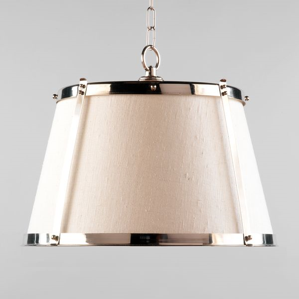 This light has a clean yet sophisticated feel, elevated in style by the nickel plated brass frame. The metalwork, combined with the lampshade, creates a simply elegant look. The shade can be produced with a variety of Vaughan fabrics.
