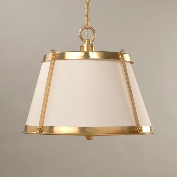 This light has a clean yet sophisticated feel, elevated in style by the high-quality brass frame. The metalwork, combined with the lampshade, creates a simply elegant look. The shade can be produced with a variety of Vaughan fabrics.