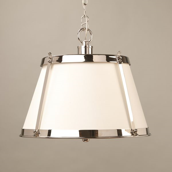 This light has a clean yet sophisticated feel, elevated in style by the nickel plated brass frame. The metalwork, combined with the lampshade, creates a simply elegant look. The shade can be produced with a variety of Vaughan fabrics.
