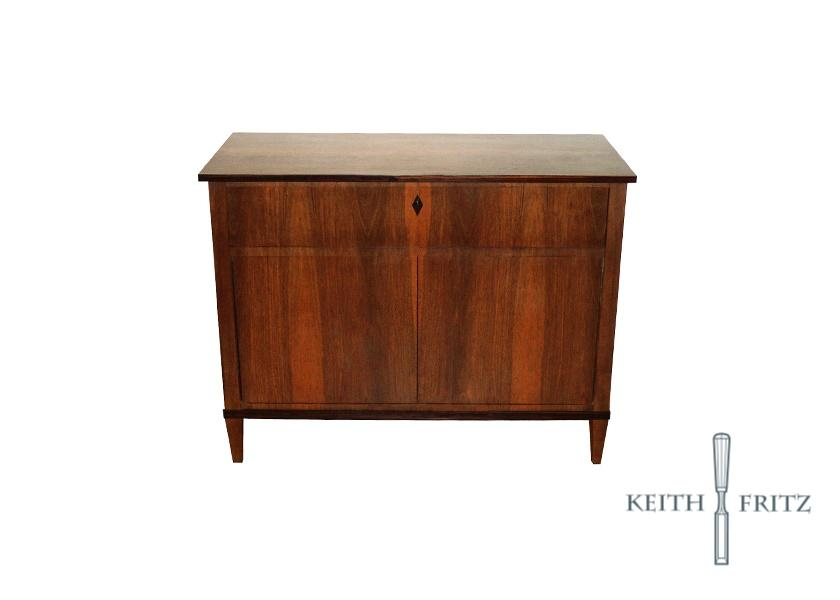 We wanted to build a piece that drew from the art of the French Revolution. Reflected in this piece is a desire to cast off glitz and ostentation, replacing them with an emphasis on clean and elemental forms. This flexible design can be utilized as a night stand, console, chest of drawers or other storage solution.