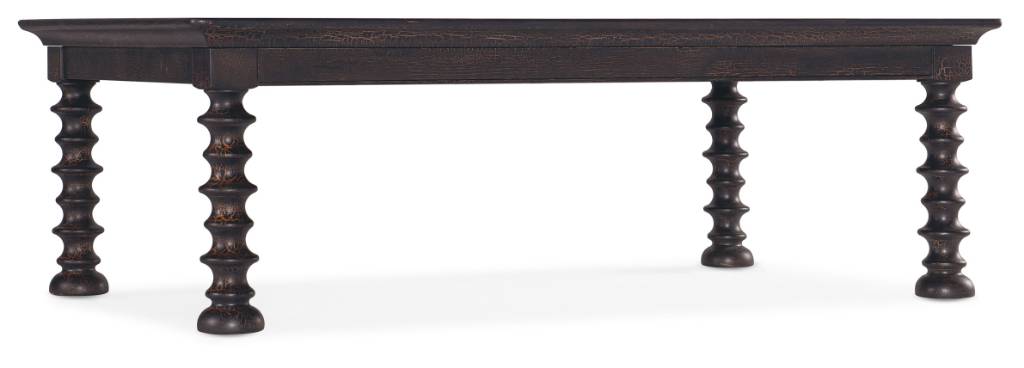 Product Description: The vintage design of the Big Sky Turned Leg Cocktail Table evokes a simpler time and place in the natural beauty of the American countryside. Crafted of Pecky Hickory Veneers with a solid-wood edged top, it’s finished in Charred Timber, inspired by the restorative beauty of a fire-ravaged forest.
