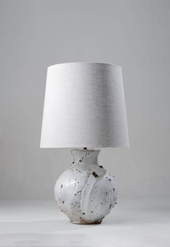 Crafted by British ceramicist, Deiniol Williams and named after the legendary tightrope walker Charles Blondin. The Blondin lamp is both unique in appearance and complex in technique. Each piece is carefully hand-thrown with each slip applied by hand and finished with a wood-ash glaze. Due to its handcrafted nature, each Blondin is entirely unique.