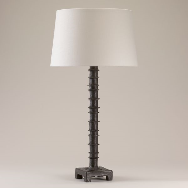 Influenced by the work of artist Giacometti, this lamp is inspired by the natural pattern of cotton reels. The textural finish is deliberately imperfect to produce an artful and highly sculptural effect.