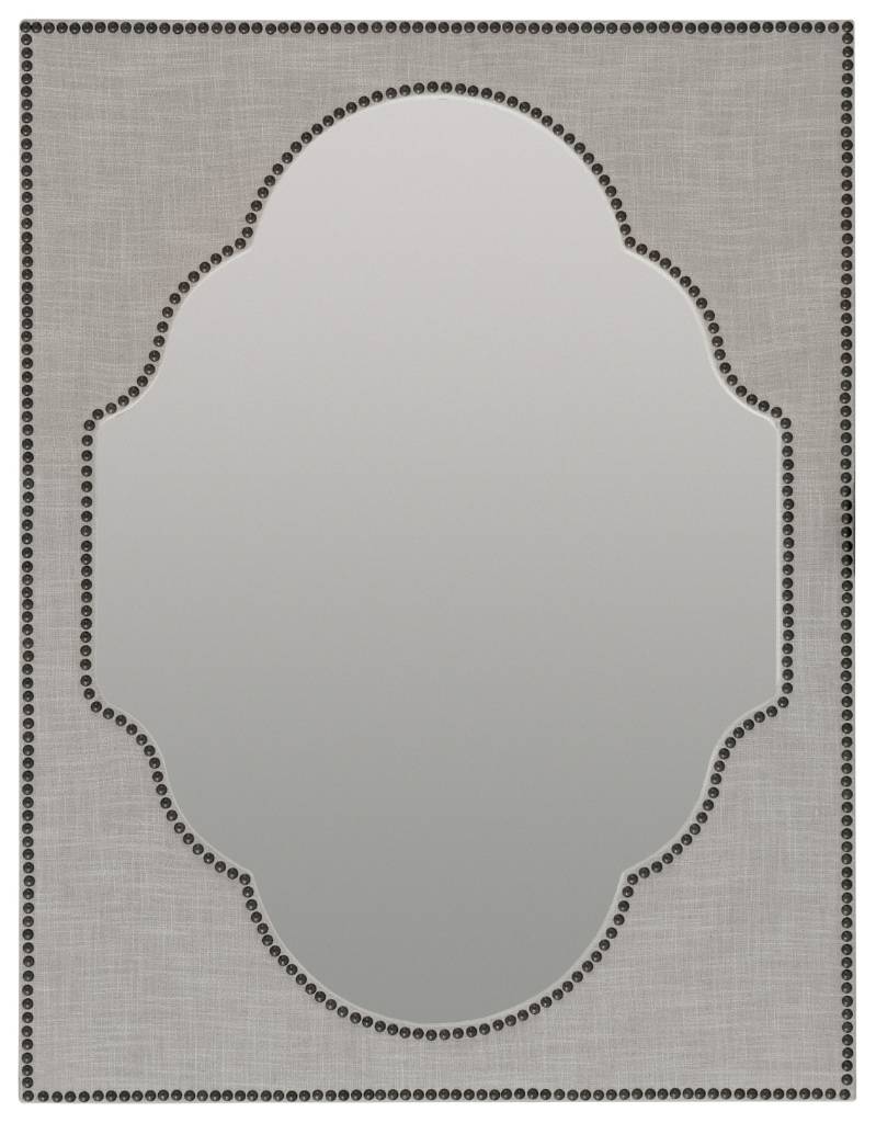 Product Description: Tactile and eclectic, the Nourmand Mirror is wrapped in the soft gray Antwerp Linen and accented with decorative nailheads. Mirror comes complete with mirror hooks and wood brackets to attach to the dresser.