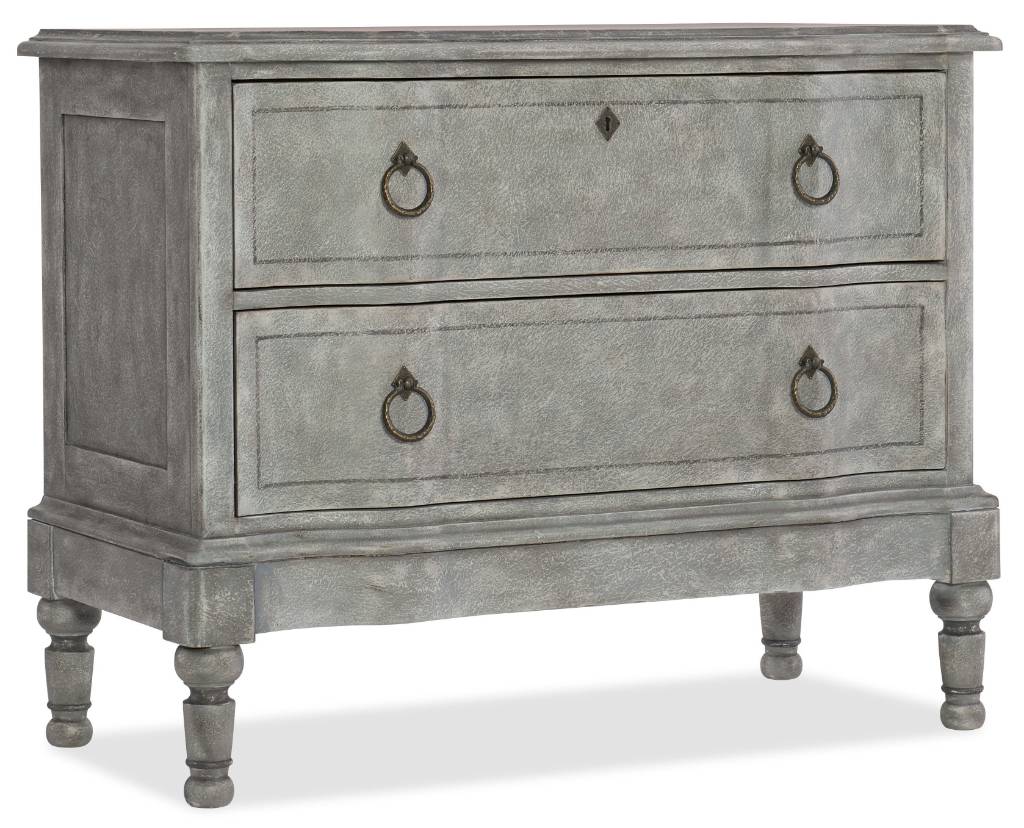 Product Description: Inspired by the Belgian design aesthetic, the lyrical blend of blue toned neutrals in the Verbena Bachelor's Chest features the Stonewash finish, a play of blue, white and gray on a finely textured surface. With two drawers, there's a drop-in felt liner in the top drawer, cedar-lined bottom drawer and a touch dimmer switch.