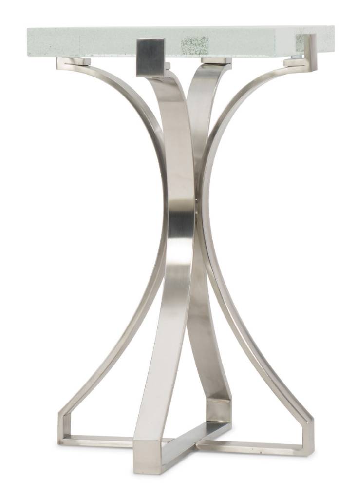 Product Description: Infuse your space with a dash of bling and sparkle with the Bubble Glass Accent Table. Crafted with a chrome metal base and a bubble glass top, the artistic table has a contemporary chic that will add charm to any space.