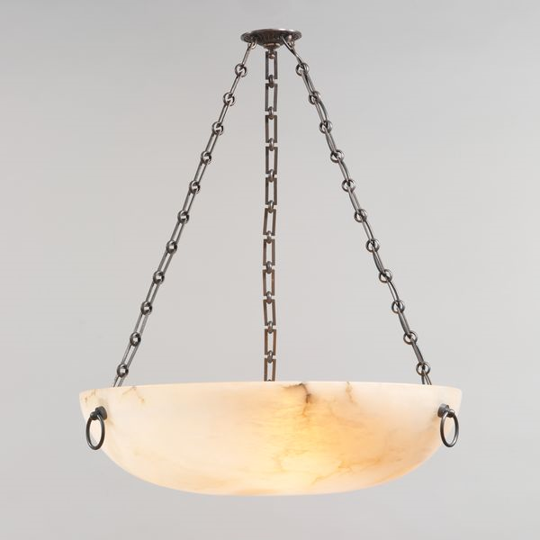Drawing inspiration from 19th century style, the veining in the stone is natural, so every light is unique. The light emanates a beautiful ambient glow from this large bowl when illuminated.