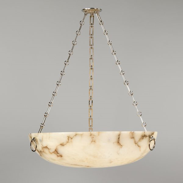 Drawing inspiration from 19th century style, the veining in the stone is natural, so every light is unique. The light emanates a beautiful ambient glow from this large bowl when illuminated.