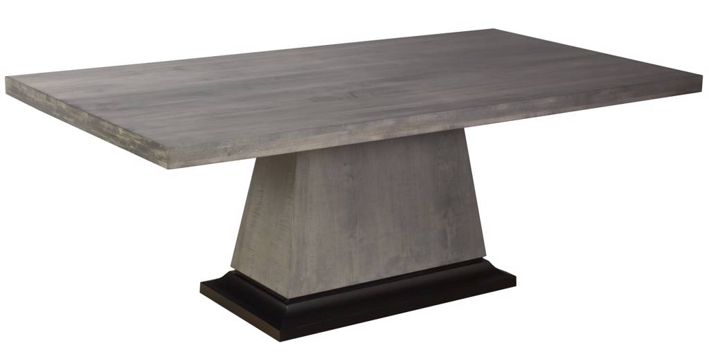 A pedestal dining table with a wide tapered column featured in the Saloom New England Collection