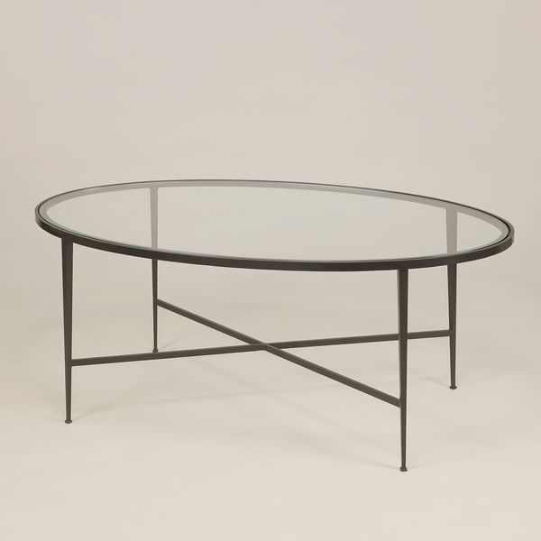 This oval table was first designed for a private Swedish client, before we added it to our collection. The bronze finish complements the oval glass top.Brass (Black Shagreen)
