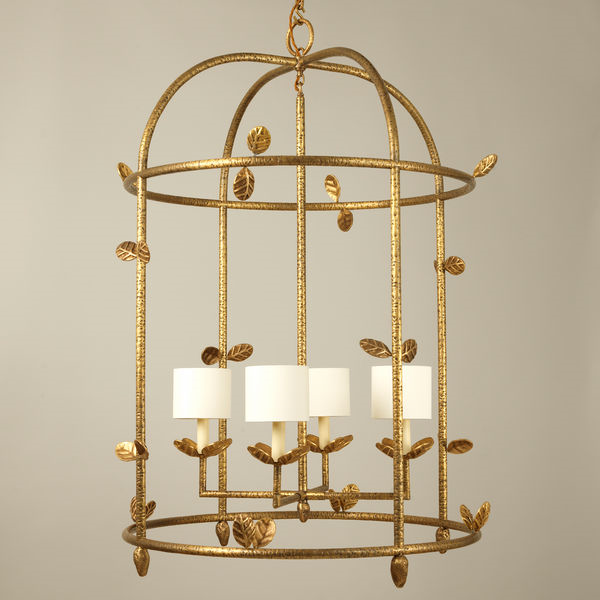 With sculpted leaves interspersed on a textured brass frame, this lantern is defined by its large scale.Brass