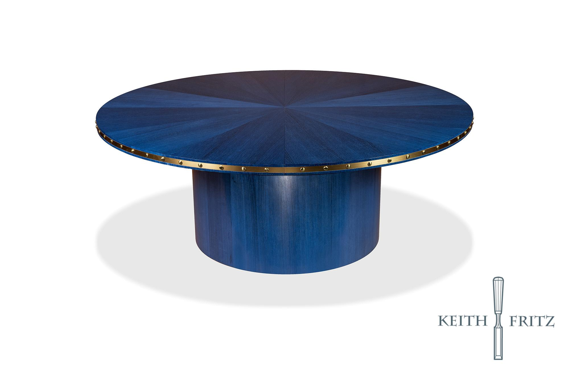 Inspired by the 1970s, this table combines a straightforward and neutral design with a metal inlay that bends along the edge. The drum bases cap off the spirit of the decade. The Carolyn is part of the Brown Davis Interiors Collection.