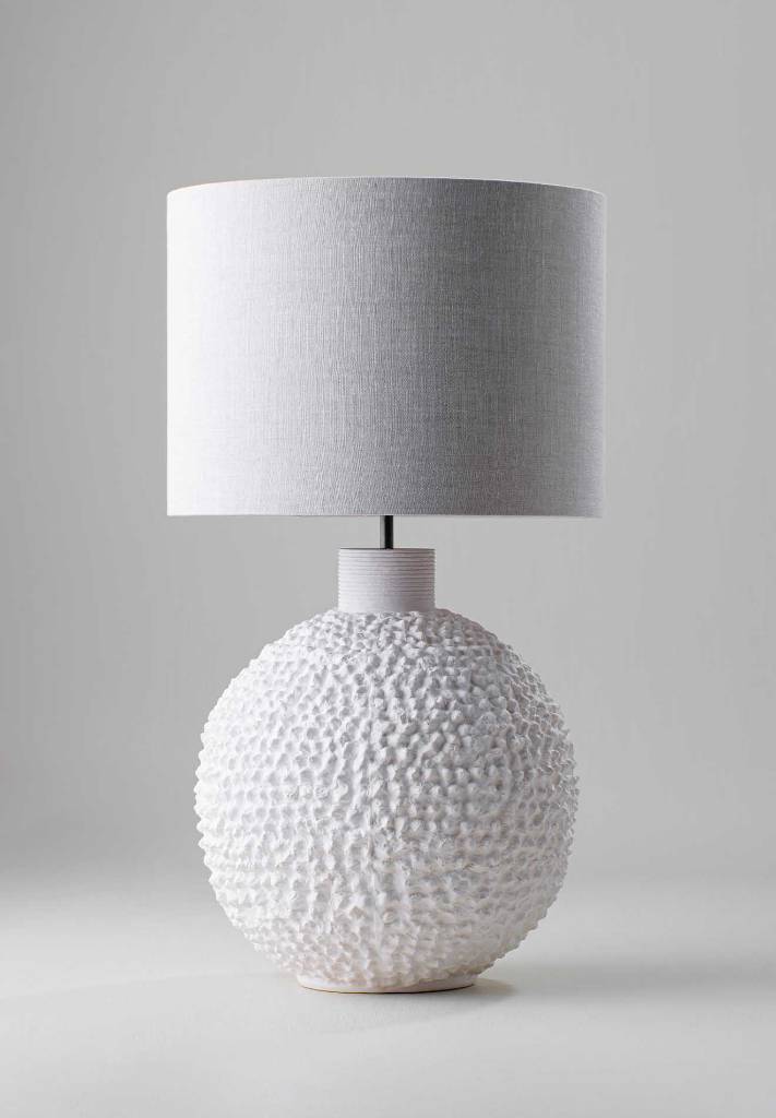 COLLECTION Autumn 20 CONSTRUCTED FROM Ceramic and cast composite collar with decorative finish HEIGHT 465mm | 18 1/2" HEIGHT WITH SHADE 710mm | 28" MATERIAL Ceramic RECOMMENDED SHADE 16" Tall Cylinder WIDTH 310mm | 12 1/4" WIDTH WITH SHADE 406mm | 16"