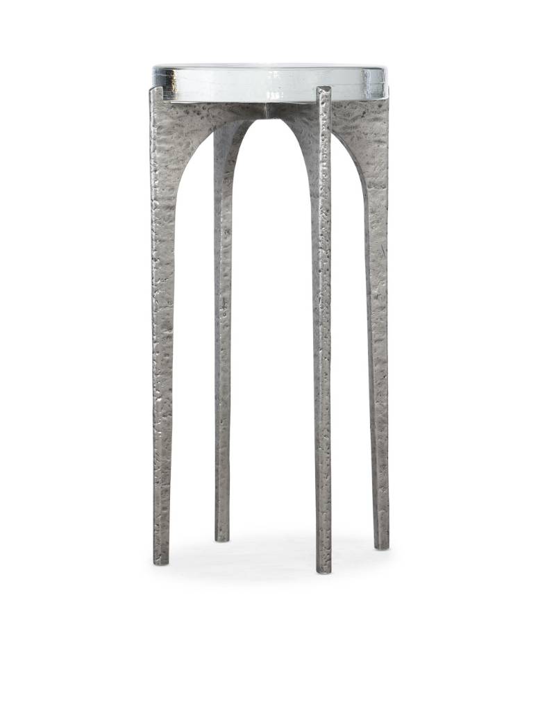 Product Description: Exuding authenticity and chic sophistication, the Chapman Martini Table combines hand-hammered forged pewter with a thick glass top in a convenient, compact 15-inch W x 15 D footprint.