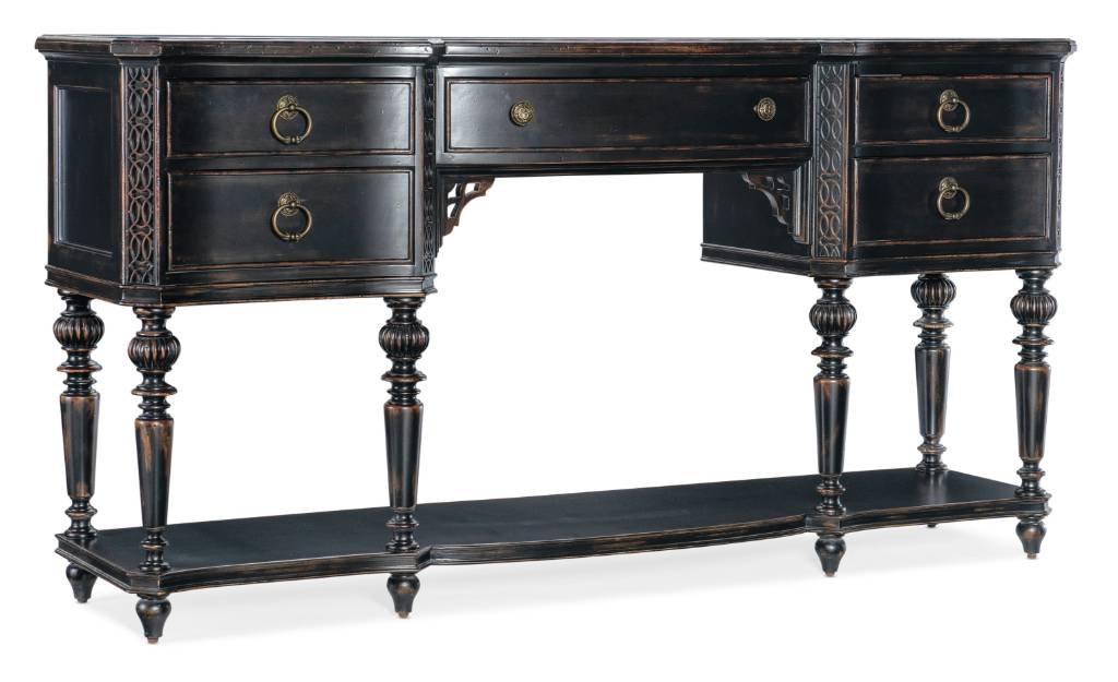 Scroll bracket accents below center drawer