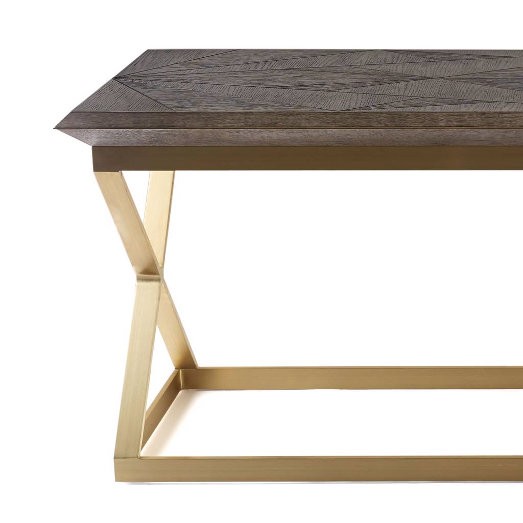 TOP Chroma on Oak or Sepia on Walnut Metal Trim: Un-Lacquered or Burnished Brass, Oil Rubbed Bronze, Burnished Silver BASE Metal: Un-Lacquered or Burnished Brass, Oil Rubbed Bronze, Burnished Silver Matte Stain: Bleached Ash, Bleached Walnut, Matte Natural Walnut, Matte Sawn Walnut, Matte Ebonized Walnut, Mink High Gloss Stain: High Gloss Ebonized Walnut or High Gloss Sawn Walnut Custom Capabilities
