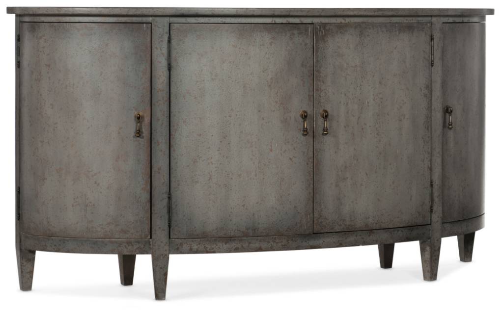 Product Description: Inspired by European farmhouses, the graceful silhouette of the Ciao Bella Buffet will give a designer flair to any room. As a delightful bonus, this piece is packed with storage, with one adjustable shelf behind each pair of center doors, 2 fixed shelves behind the left and right doors, 2 drawers behind the center doors and drop-in felt liners with silverware storage. Crafted of Poplar and Hardwood Solids with Maple Veneers, the buffet features a character-filled Speckled Gray finish with hand chiseling and multi-layer rub-through. Tear-drop hardware adds a sparkle of style.