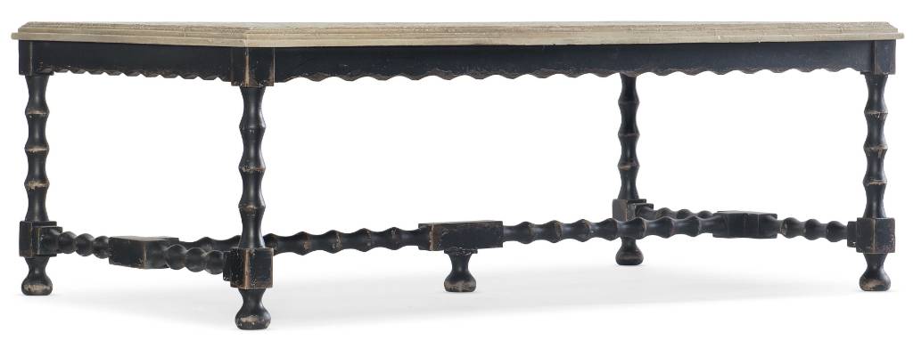 Product Description: Elegant vintage turned spindle legs in black contrast with a Flaky White-finished top for a look that is farmhouse fresh and inviting. The practical rectangle shape makes this table livable and functional. Crafted of Poplar and Hardwood Solids with Maple Veneers.