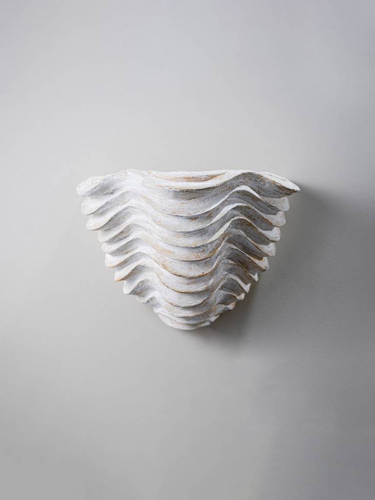 The Clam Shell uplighter is inspired by Botticelli's The Birth of Venus, with its soft grooves capturing the light to form distinct shadows. Also available in large.