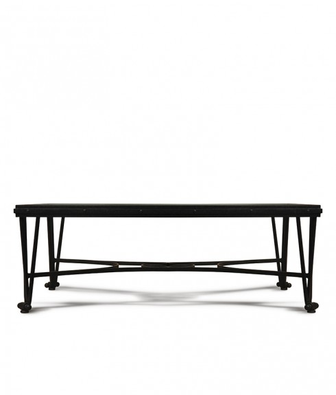 31¼”d x 49¼”w x 18”hinset beveled glass topcustom sizes available60 lbsantique ironhand forged iron