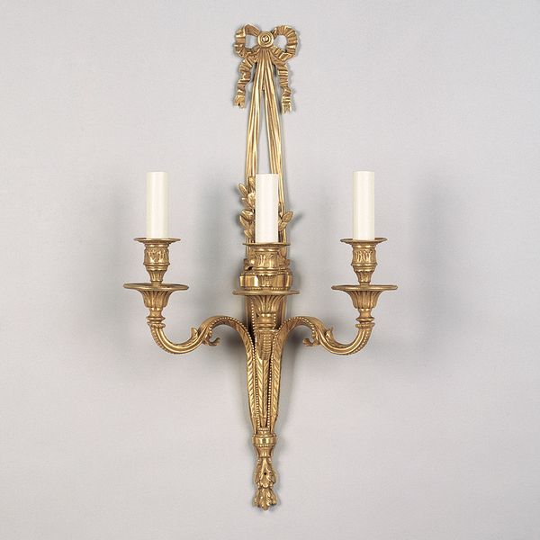Based on a Louis XV wall light from the Vaughan archive, this design has classical ribbon and bow decoration in cast bronze with a gilt finish.Gilt