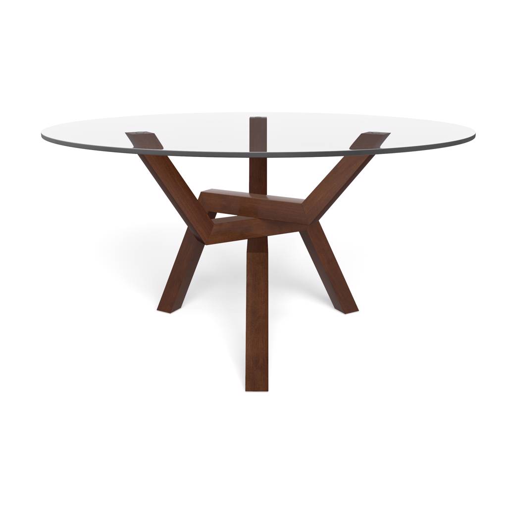 Product Number Shown: GFCO 5454 CLEO Table Diameter: 54" 29"h Height: Dining (approximately 29") Tabletop Shape: Round More Dimension Information: Click hereA glass top pedestal dining table with a geometric base