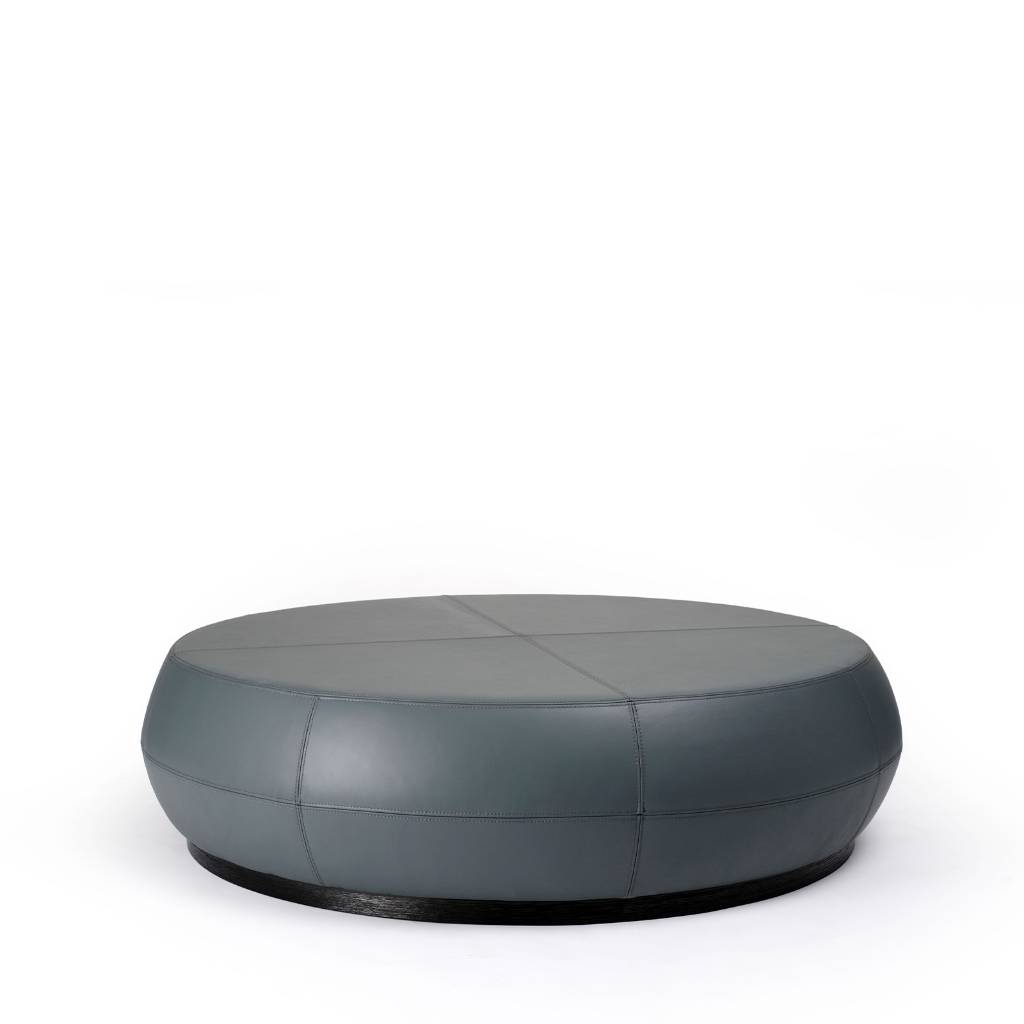 A fully upholstered table with decorative seaming, the Helios coffee table is a round version of the Liaigre Galet coffee table. Its generous proportions and circular shape allow for multiple uses such as a seat or coffee table which highlight a room.