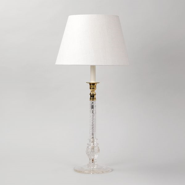 Based on an original antique candlestick, this is a classic 19th century design. The twisted crystal glass column is wonderfully decorative and complements the brass candle cup. The faceted pattern on the base refracts light.