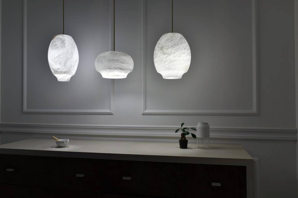 The beauty of alabaster draws focus in the Colette Pendant. Its perfect oval shape amplifies the stone’s natural spirals, clouds and swirls, while the base opens into a discreet cylinder that emits a gentle pool of light. At once opulent and delicate, as if suspended in space, it adds an ethereal orb-like glow to rooms.