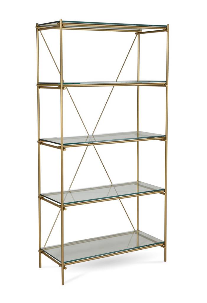Clean lines and a modern, feminine look are signature characteristics of furniture designer Katy Acuff's pieces. The Collins Collection is no exception. The etagere is available with either clear or bronze glass shelves.