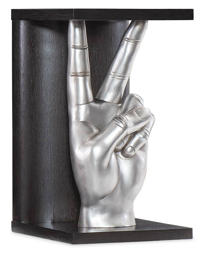 Finish: Black wood finish on exterior with silver finished peace sign hand