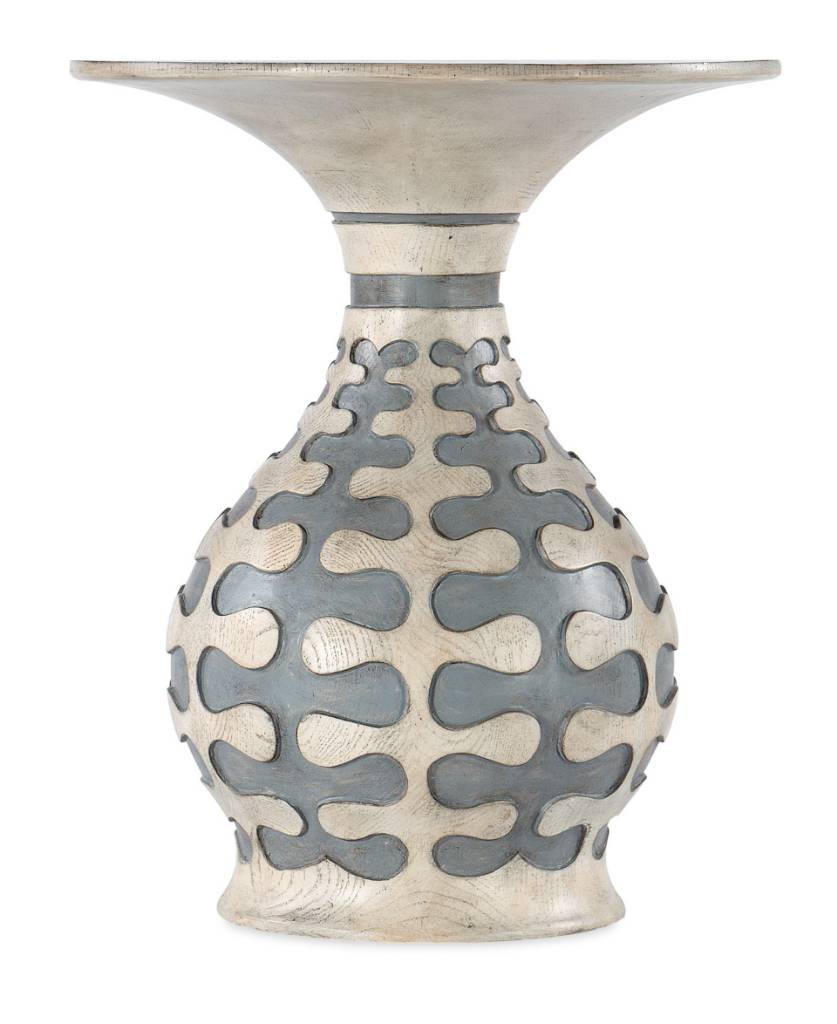 Pedestal base with two-tone cut-out design