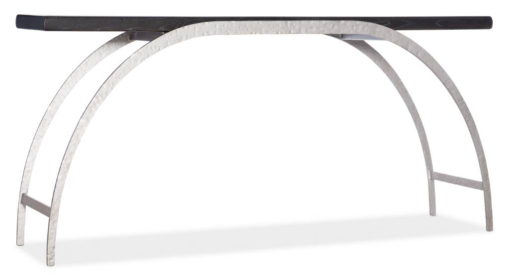 Product Description: Infused with grace and energy, the Commerce & Market Metal and Wood Console combines a rustic Oak Veneer top in a black finish with an arched metal base in a silver finish.