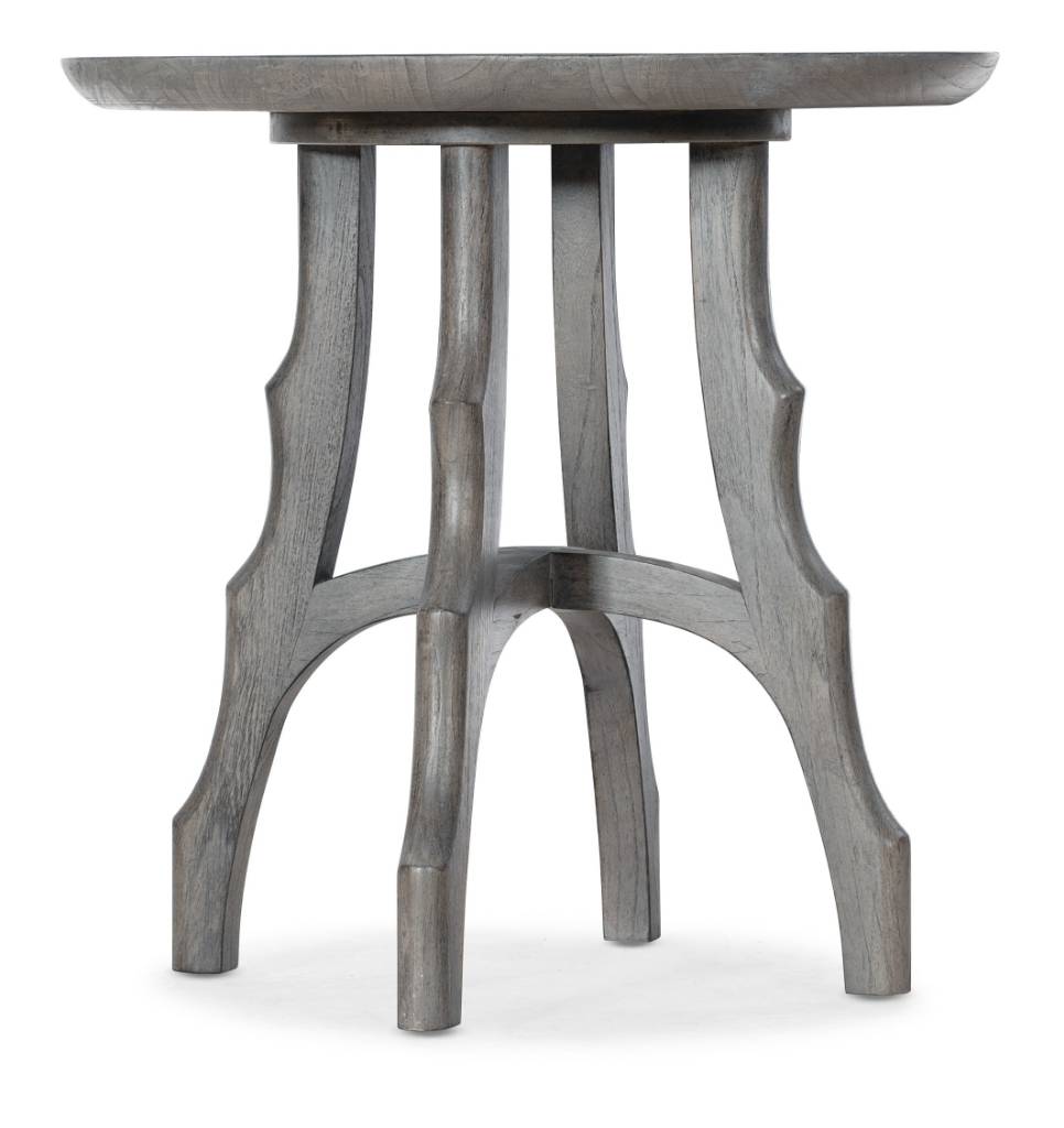 Product Description: Evoking the feel of a primitive piece carved by a craftsman, the Commerce & Market Round End Table has a scalloped base motif and natural wood finish with gray tones on solid Mindi woods for a casual sophistication. The compact 21W x 21D footprint makes it versatile for many living spaces.