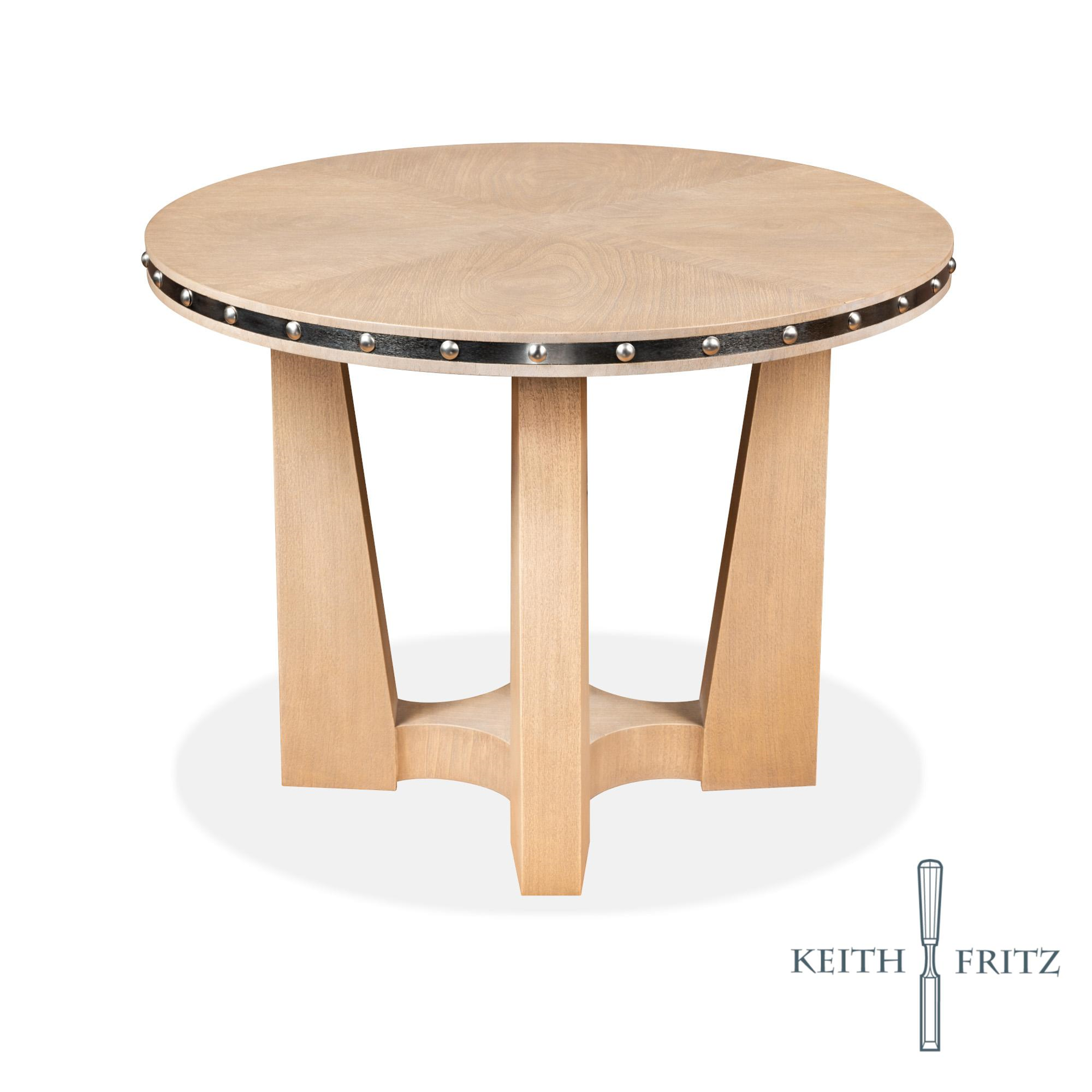 Inspired by a life at sea, a compass-shaped base leads to four gently tapered legs that support the round top.